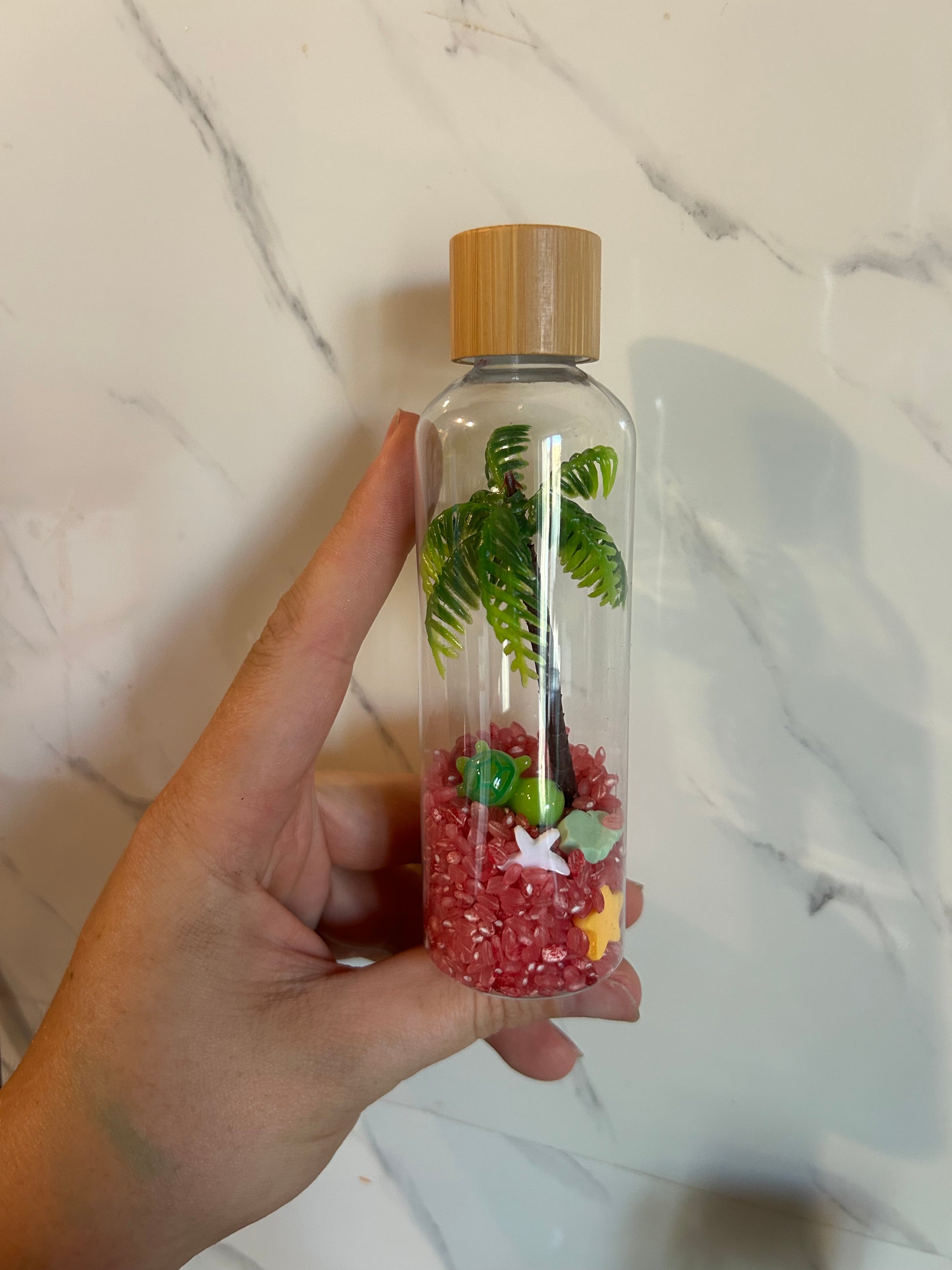 🌺 Bouteille sensorielle “Évasion rose sous les cocotiers”